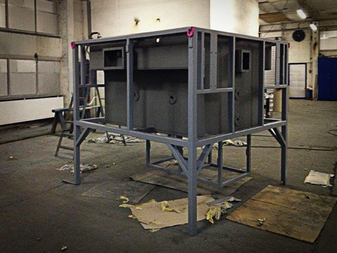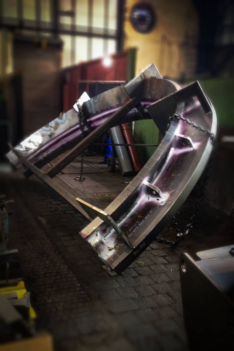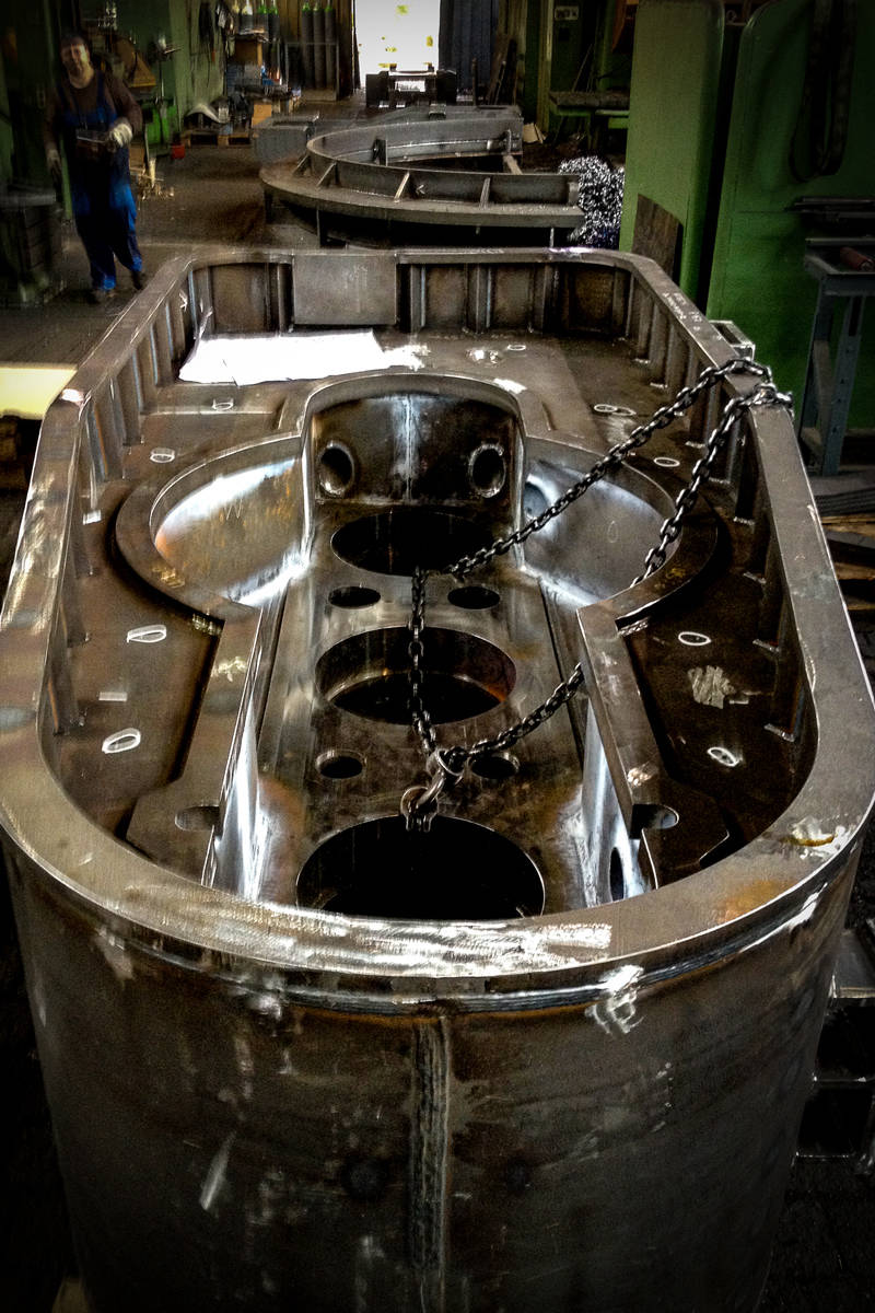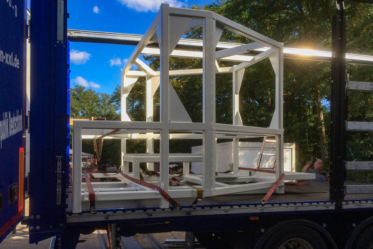 Kompletter Stahlbau inklusive Material mit mechanischer Bearbeitung, spannungsarm geglüht, gestrahlt und grundiert